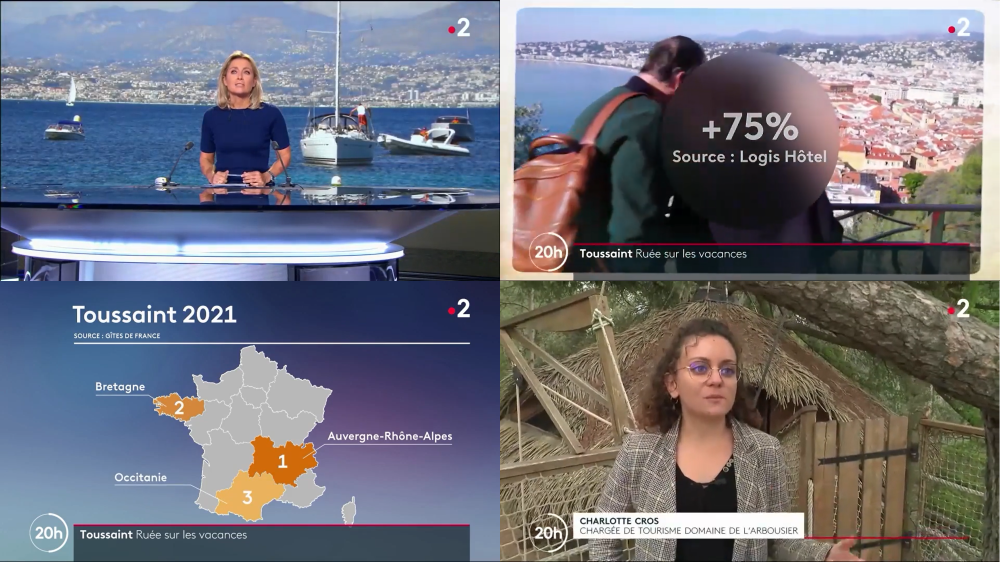 Captures d'écran du journal télévisé du 20 heures de France 2 présenté par Anne-Sophie Lapix le 19 octobre 2021.